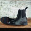 Jodhpur schoen van synthetisch leer, rubberen zool, rits aan voorzijde. Bovenste deel van jodhpur is uitgevoerd in leuke polyester kleuren met cambrill voering